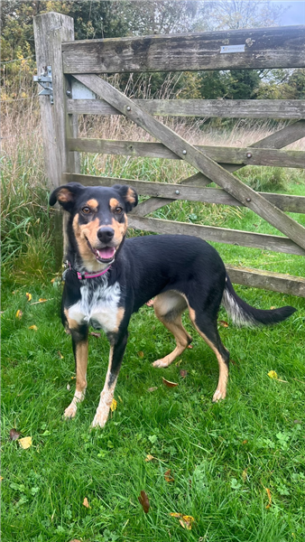 She is a confident friendly girl and should be suitable to live with children over 6yrs old. She travelled well crated in the back of a car on the journey to us and has been good meeting other dogs out on a walk.