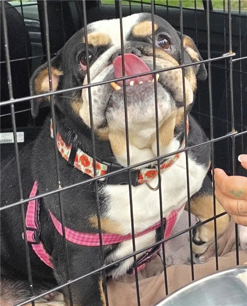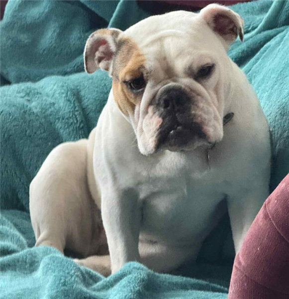 Placid, stubborn, loving, major cuddle monster Fleur is a lovely example of our beloved breed. She is looking for a new home after a change in family circumstances. She is currently kenneled as she cannot stay at home any longer through no fault of her own. Fleur is gorgeous and loveable and definitely prefers humans to other animals. She used to live with other dogs and had the occasional spat over toys and can get jealous so no dogs please although she is easily handled on walk if she comes across other dogs. She is very good around children and has been around very young children but isn't alwyas aware of her size so we would like her placed with children 10+ Fleur loves all people and can be left home alone for up to 5 hours. Fleur is not a fan of cats and will chase the given half the chance. She can be reluctant to get in the car and the previous owner reported that she needs lifting in, no aggression she just "puts the breaks on" Fleur is currently in our kennels and was previously kennelled for some time when with her previous owner so may need patient re-housetraining, however she only has miminal accidents and is generally kennel clean. Fleur could benefit from a lamb or fish based grain free diet in her new home to help with redness under her nose rope which needs daily cleaning. A very happy standard Bulldog with a wonderful personality and all the typical traits and characteristics of the breed, who simply adores attention. Loves to wag her tail and her bottom and has earnt the nickname Tina Turner in foster care for that very reason! Are you her very lucky forever family? No breed experience necessary in fact she would be a perfect girl for first time Bulldoggers xx